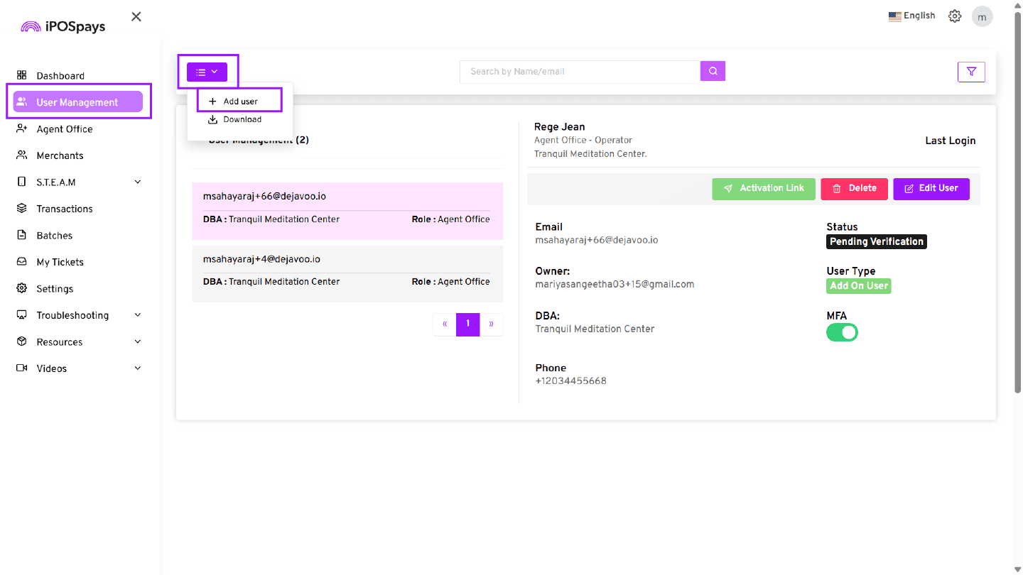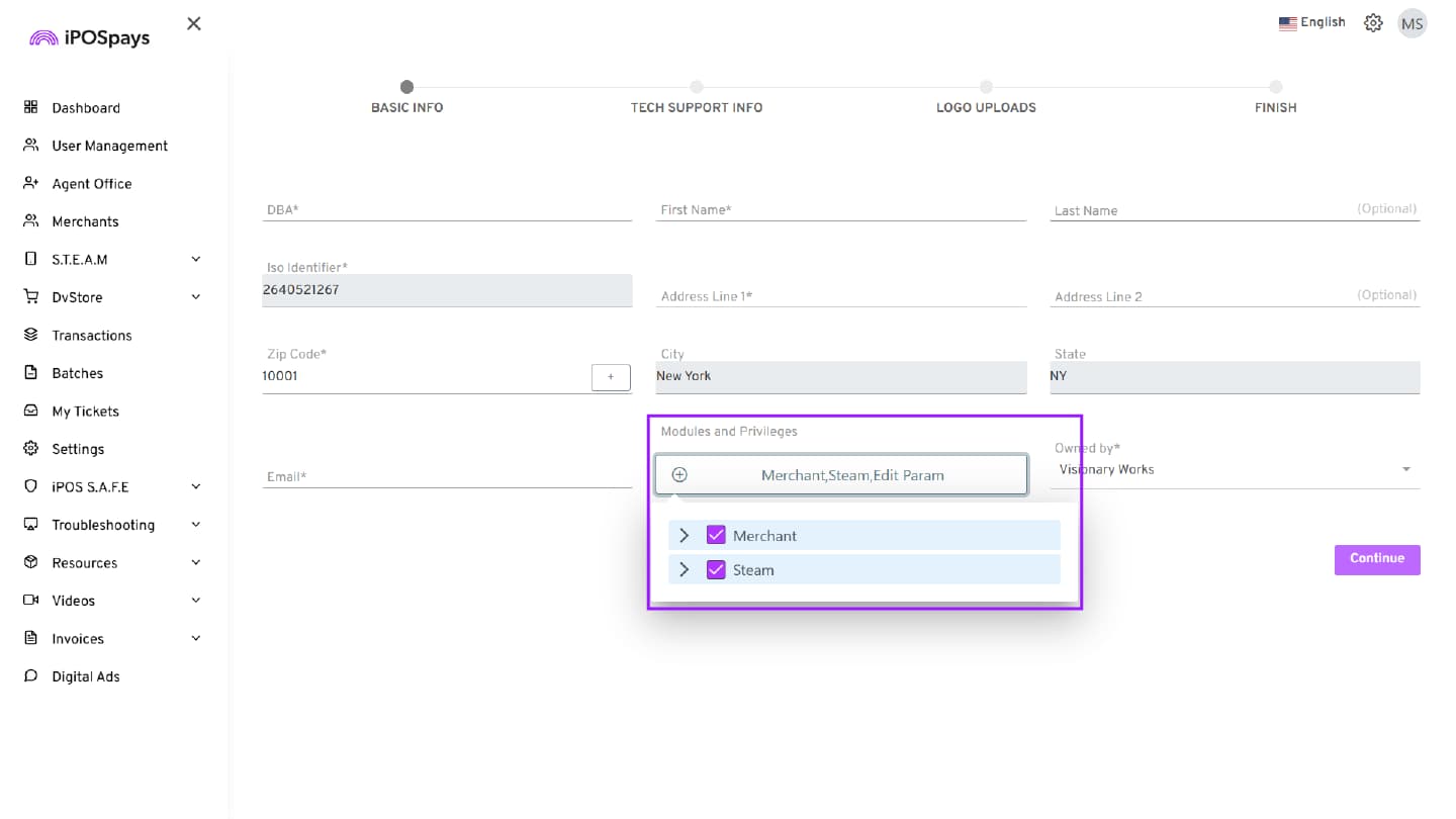If the Merchant module is not enabled, the Agent Office will not be able to create or manage merchants in the iPOSpays portal.
