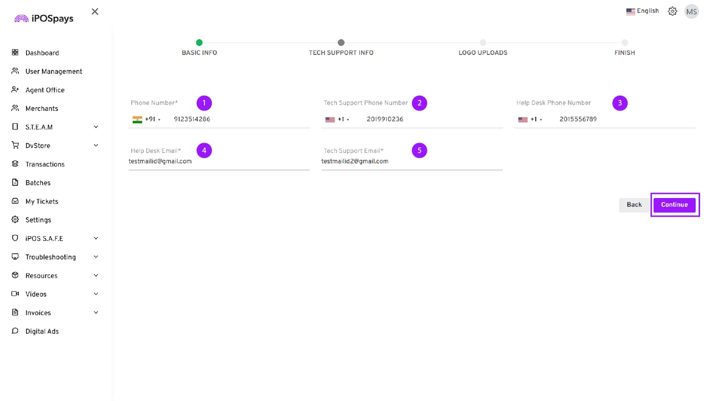 Refer to the Merchant Onboarding process (Merchant Info → Store Info → Add Device → Edit Parameters) in the How to Onboard a Merchant on iPOSpays steps.