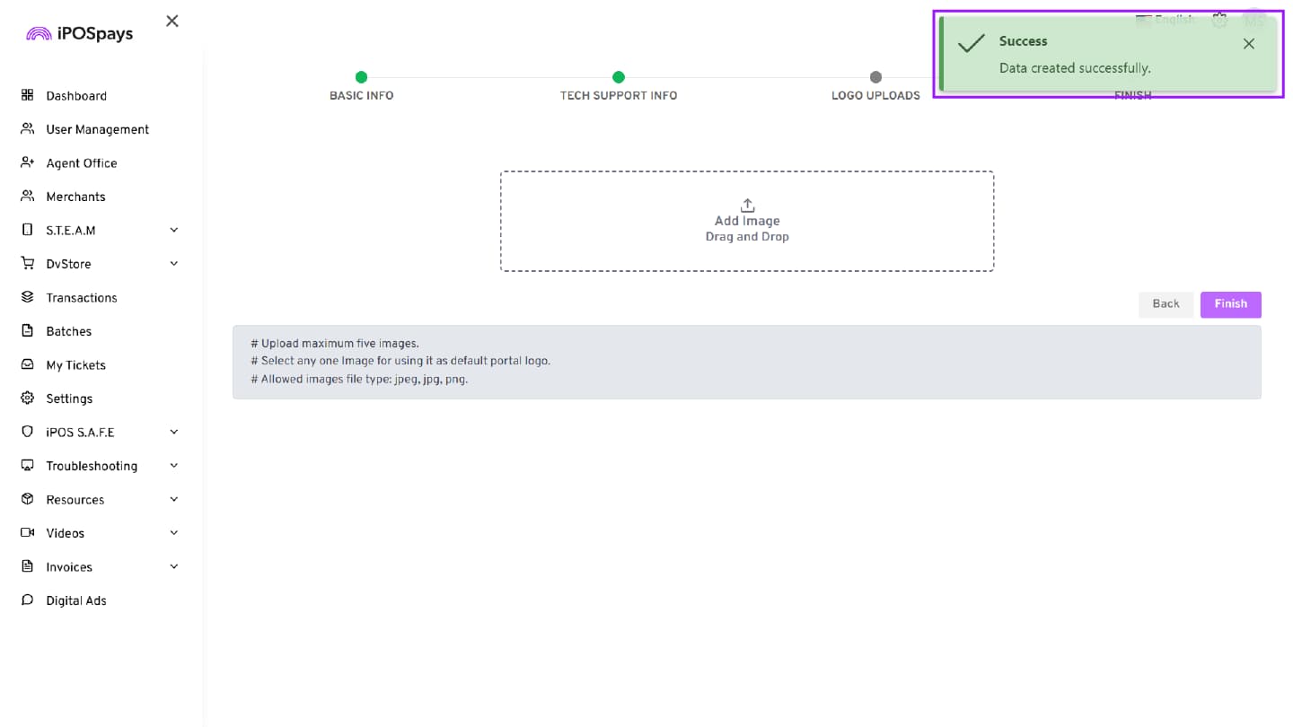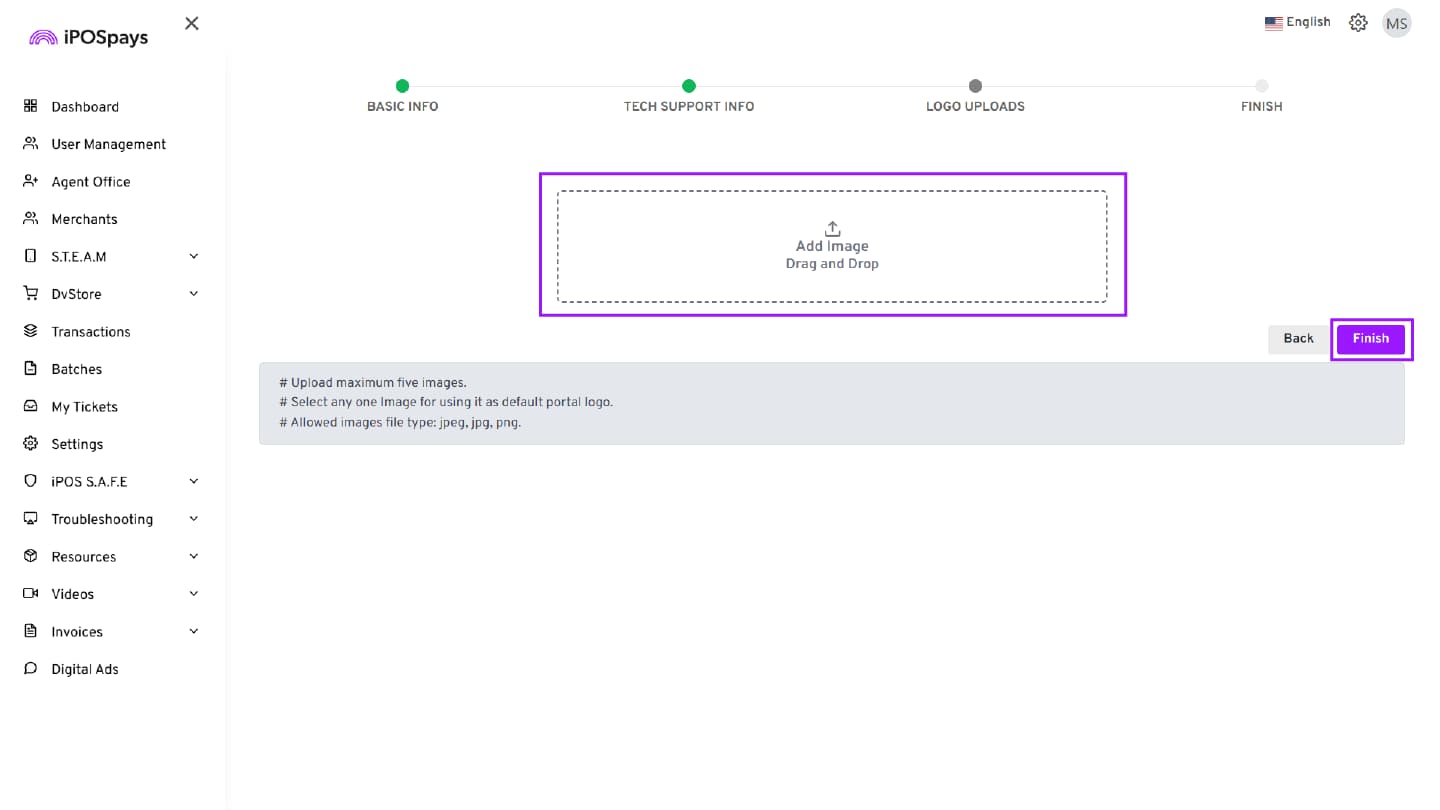 - Log in to the iPOSpays Portal using the Agent Office account credentials.