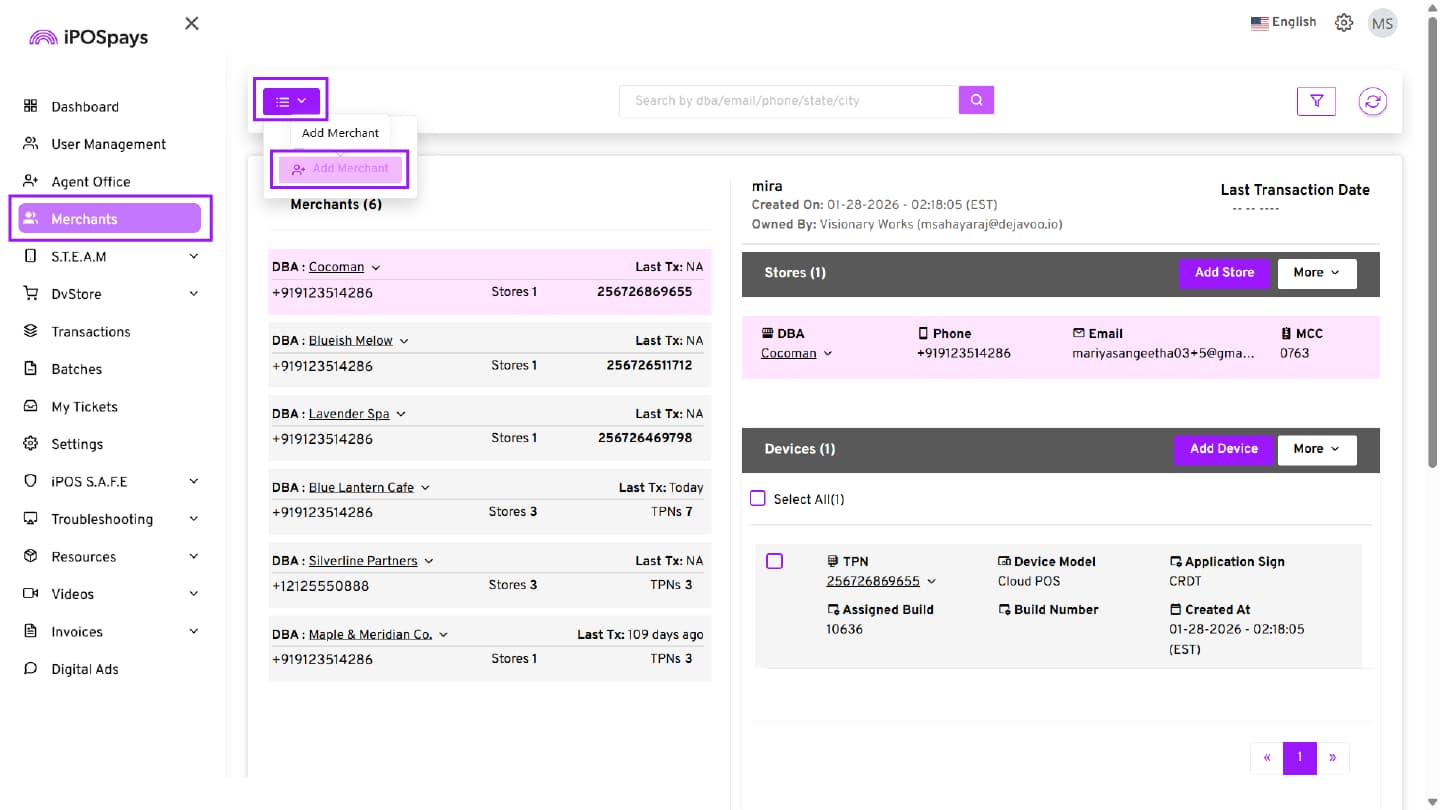 Select Add Merchant.