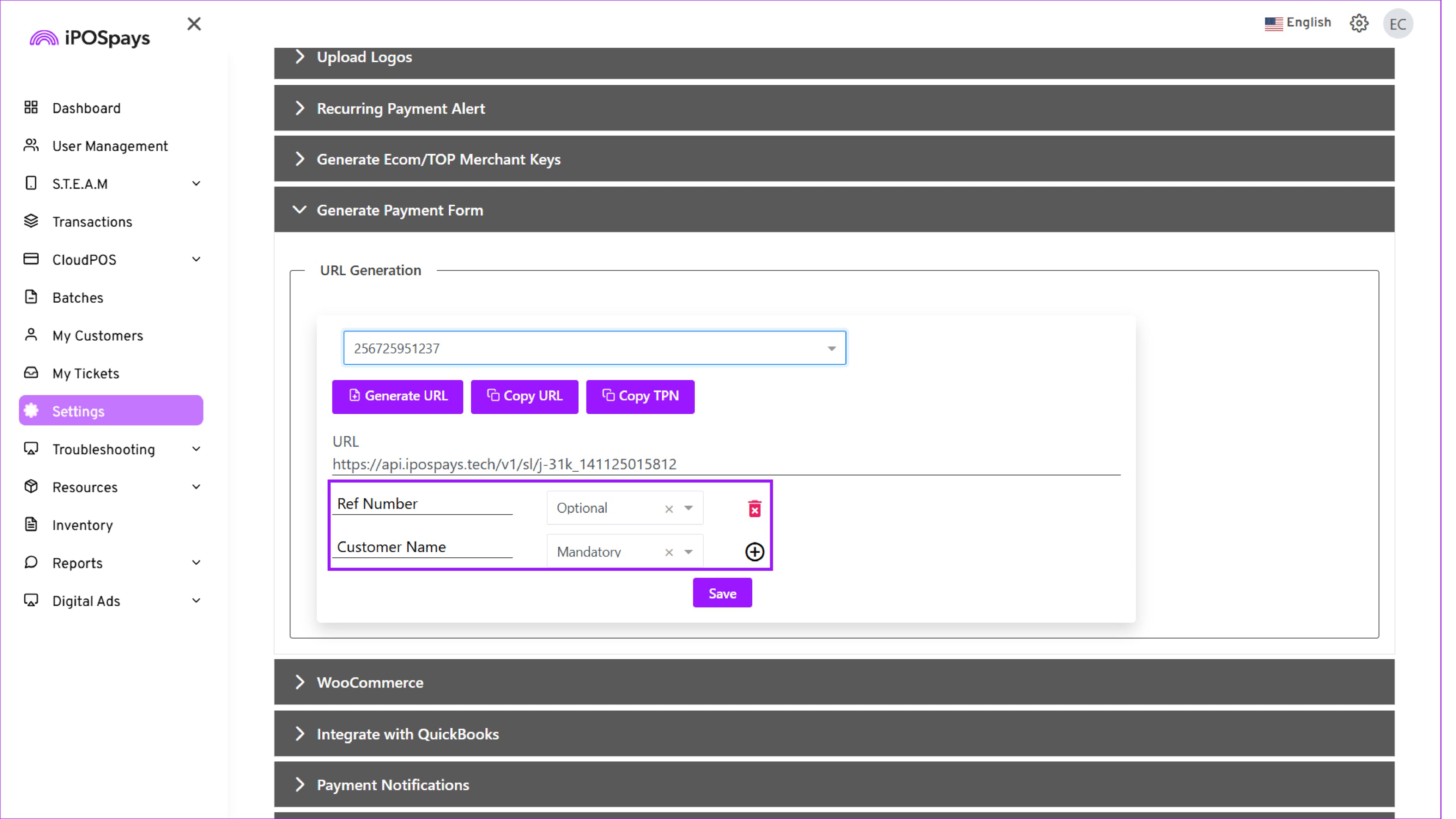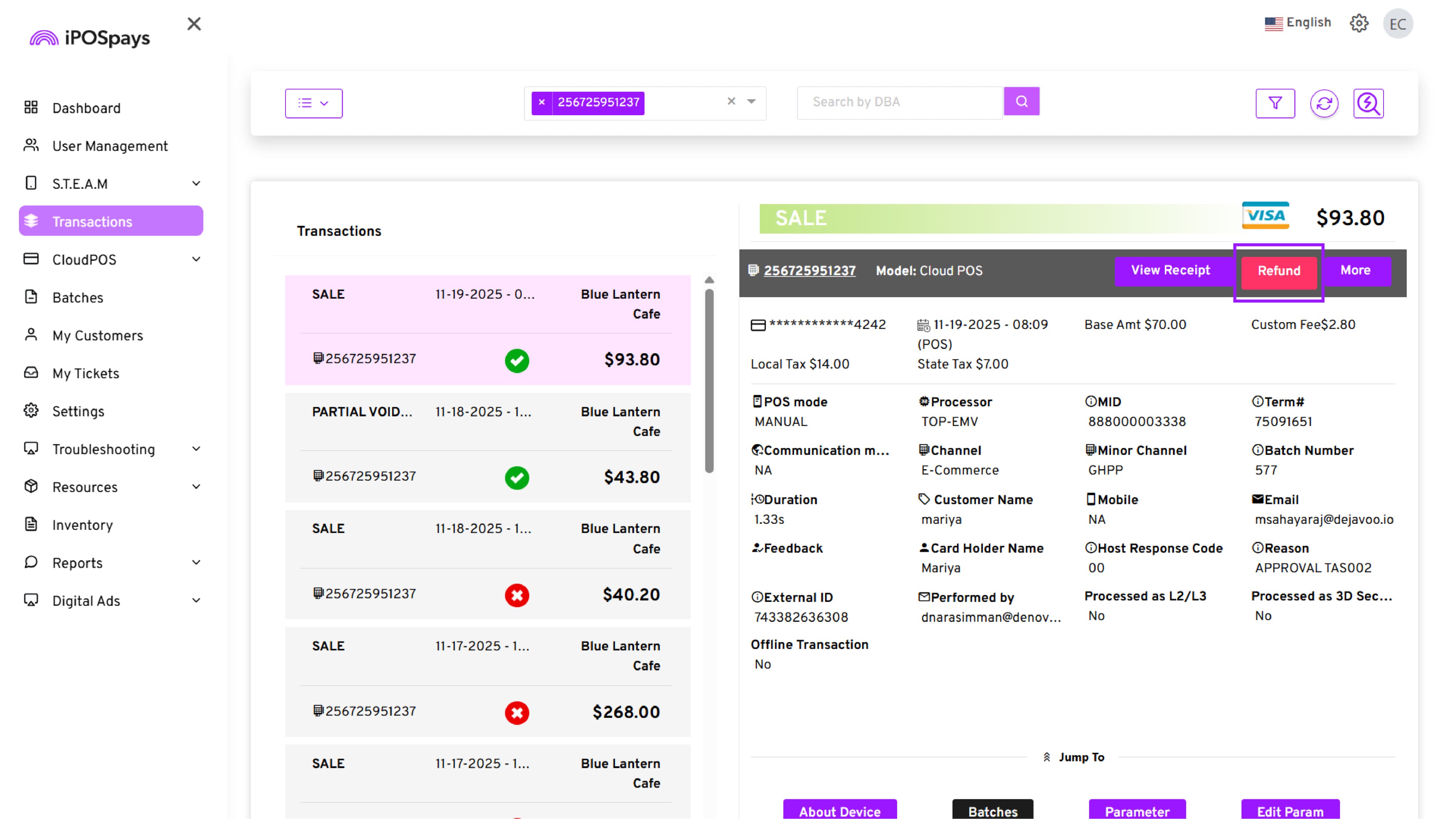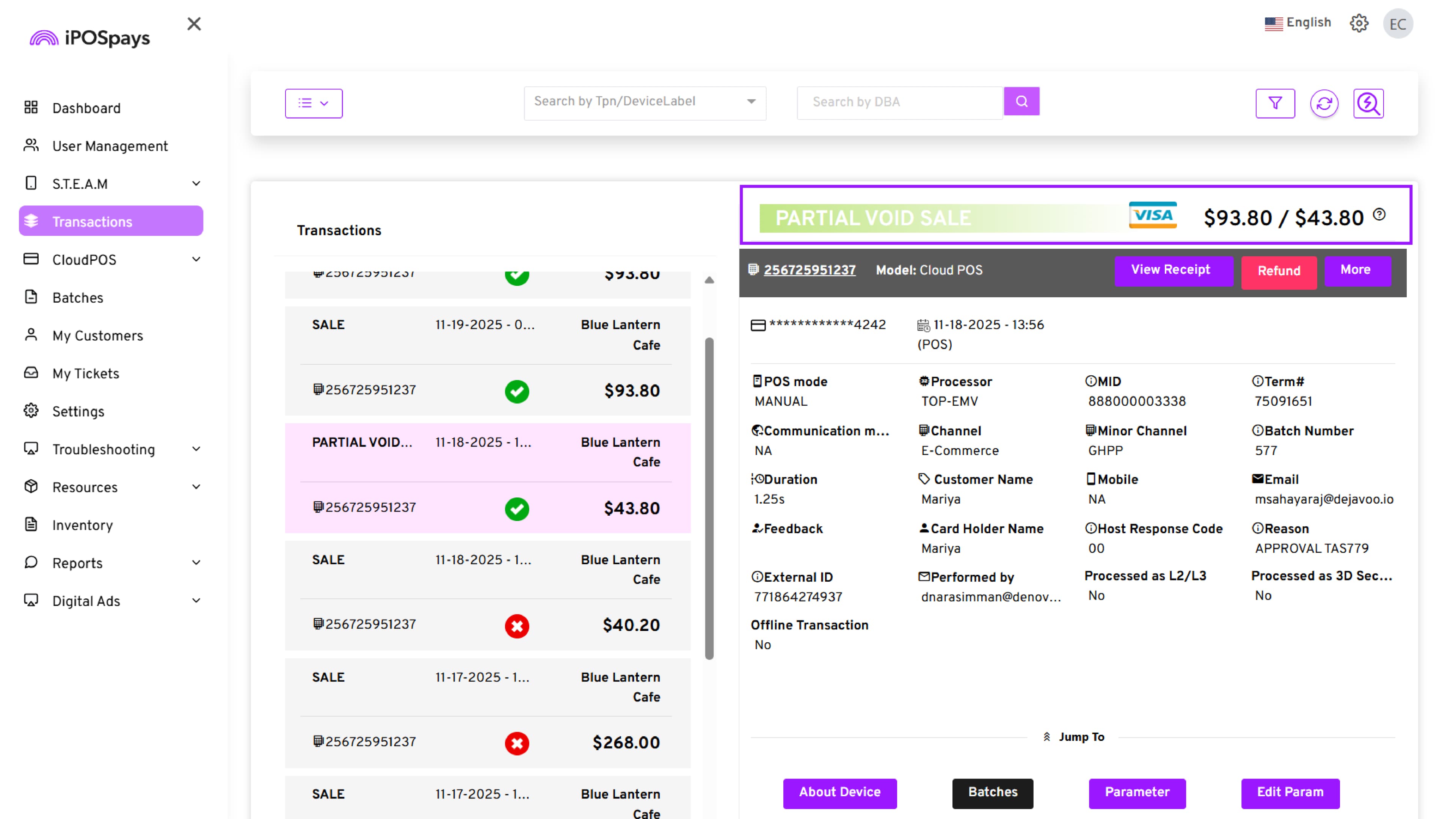 Supported Platform: iPOSpays Portal (Merchant Account)