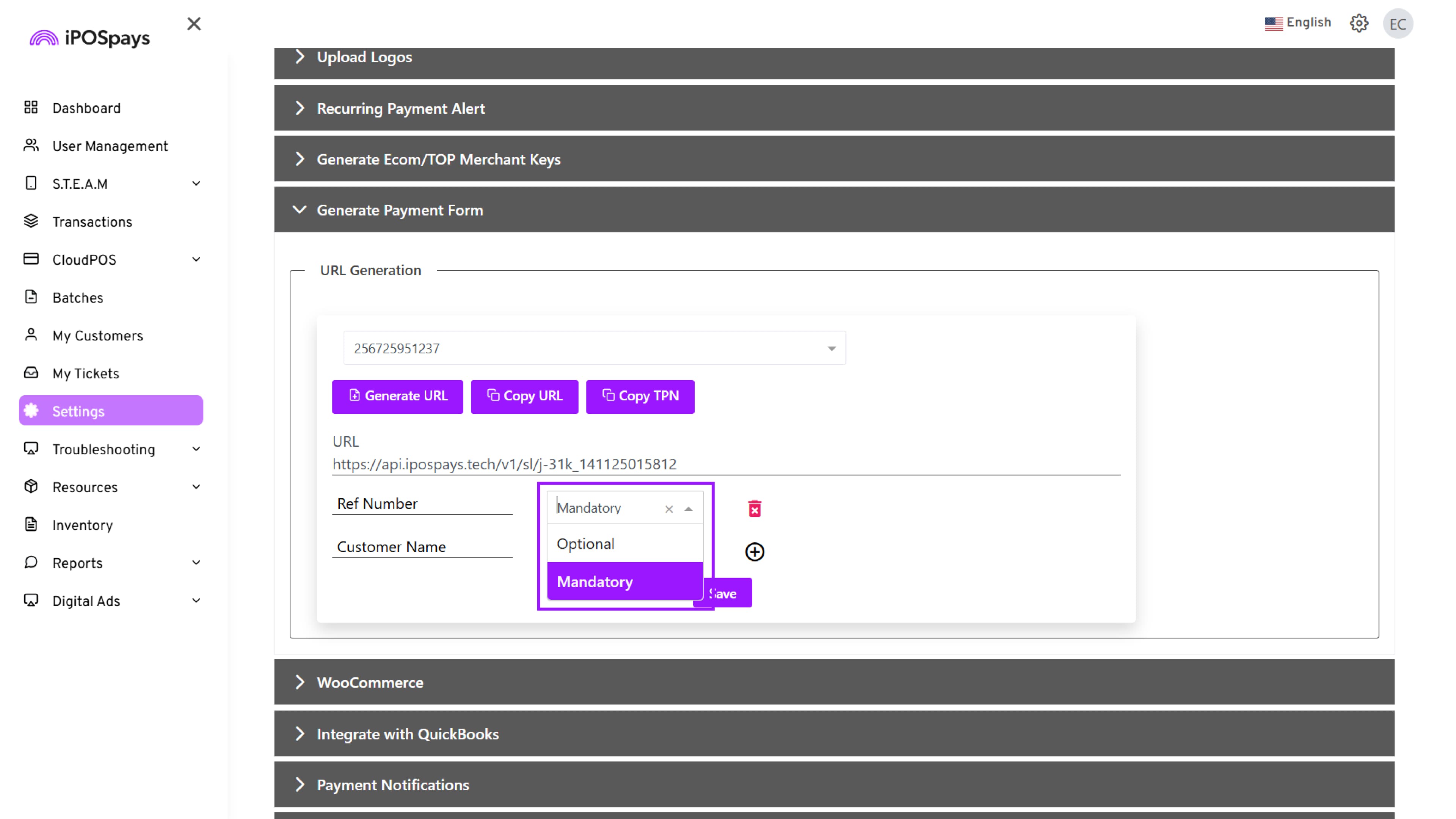 Generate Payment Form on iPOSpays