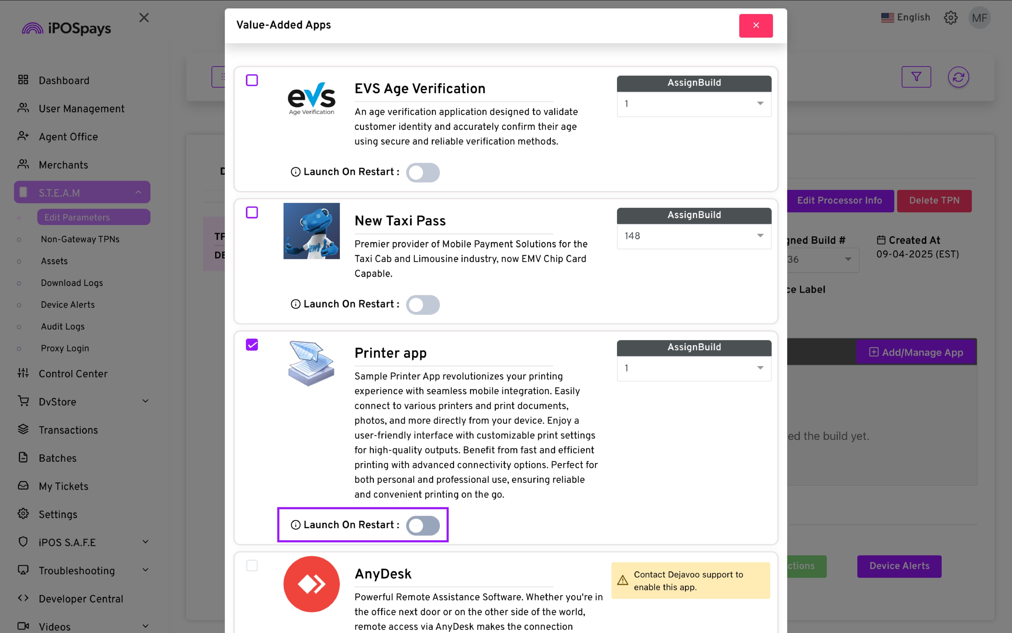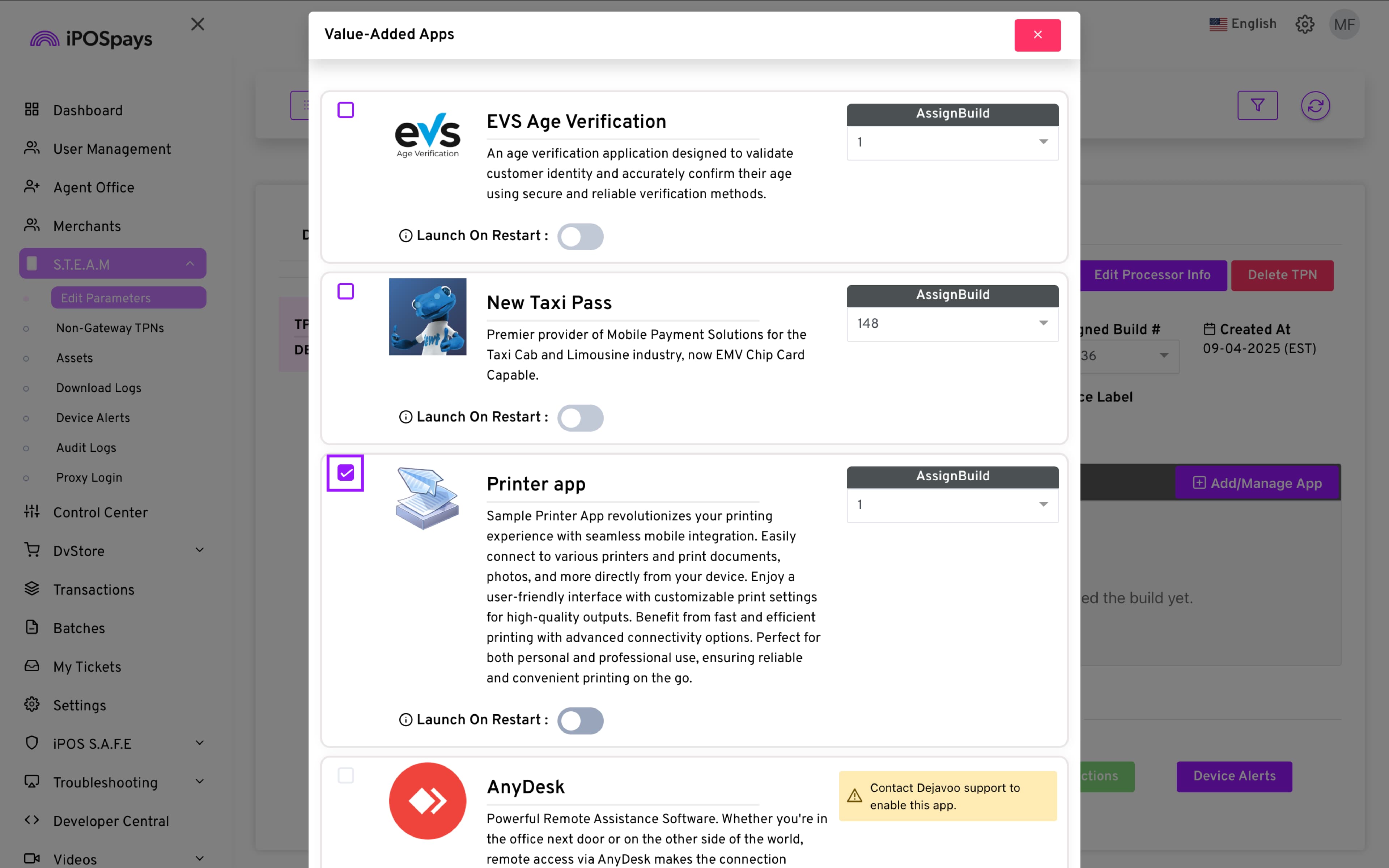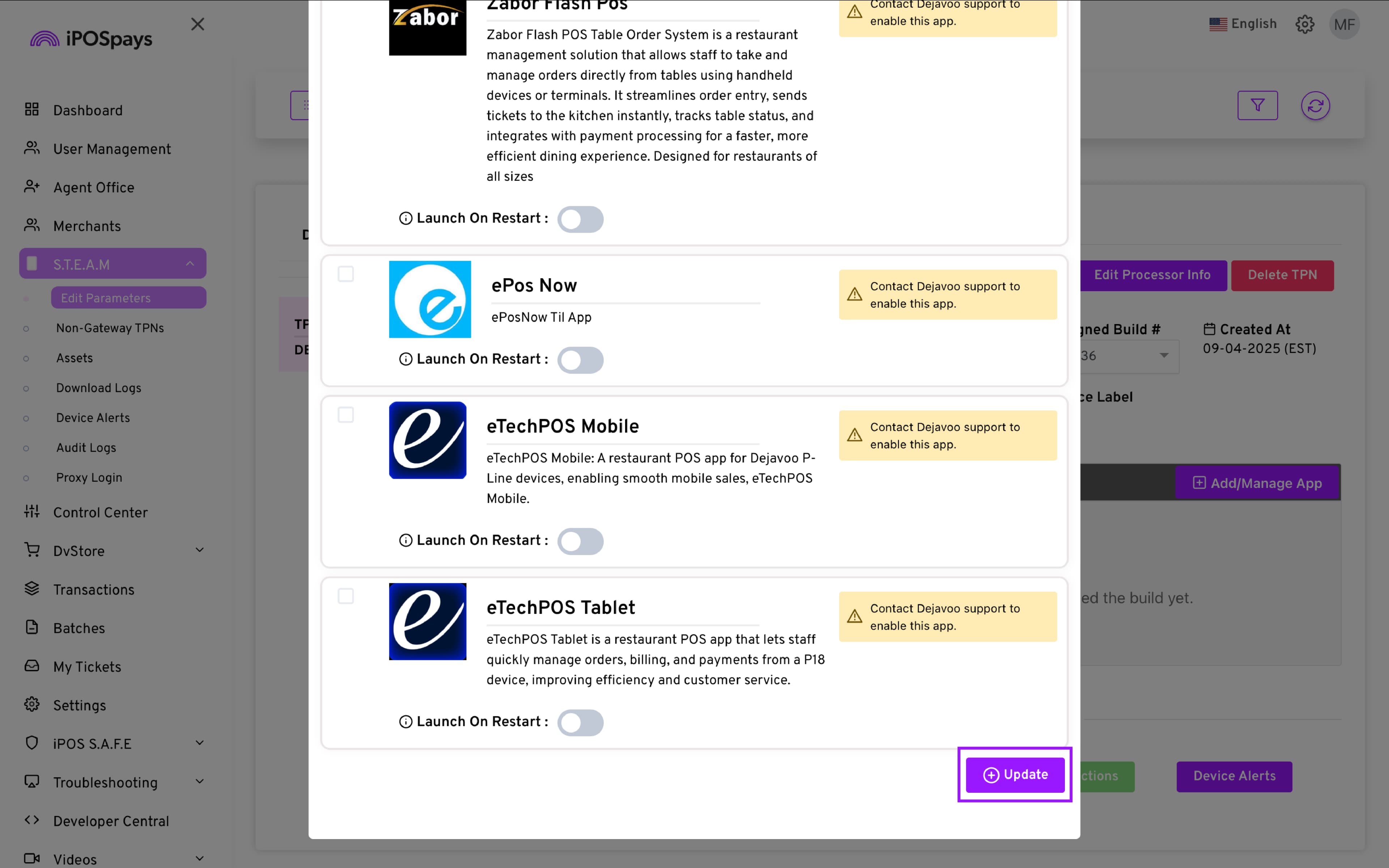 ISOs can request these applications through their Dejavoo executive and assign them to merchant terminals.