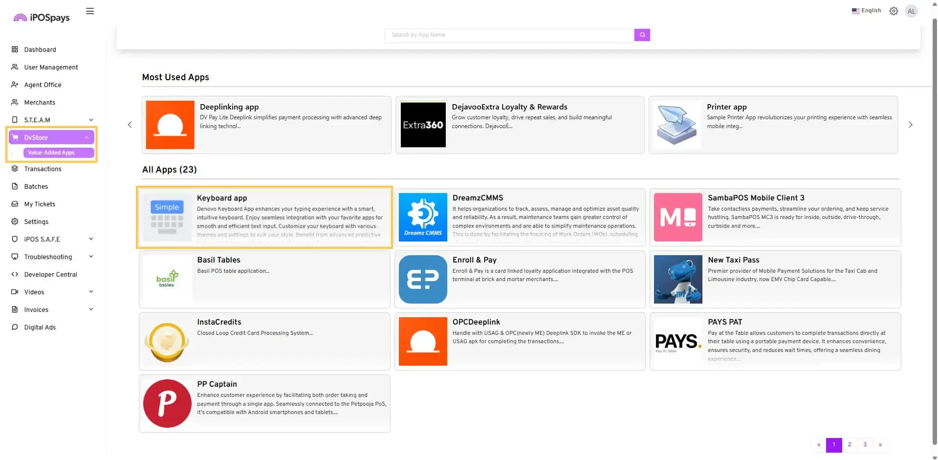 DVStore is a marketplace application designed to centralize and streamline payment applications for ISOs, ISVs, and merchants. It allows users to access, install, and manage multiple payment-related applications directly from their Dejavoo payment terminals.