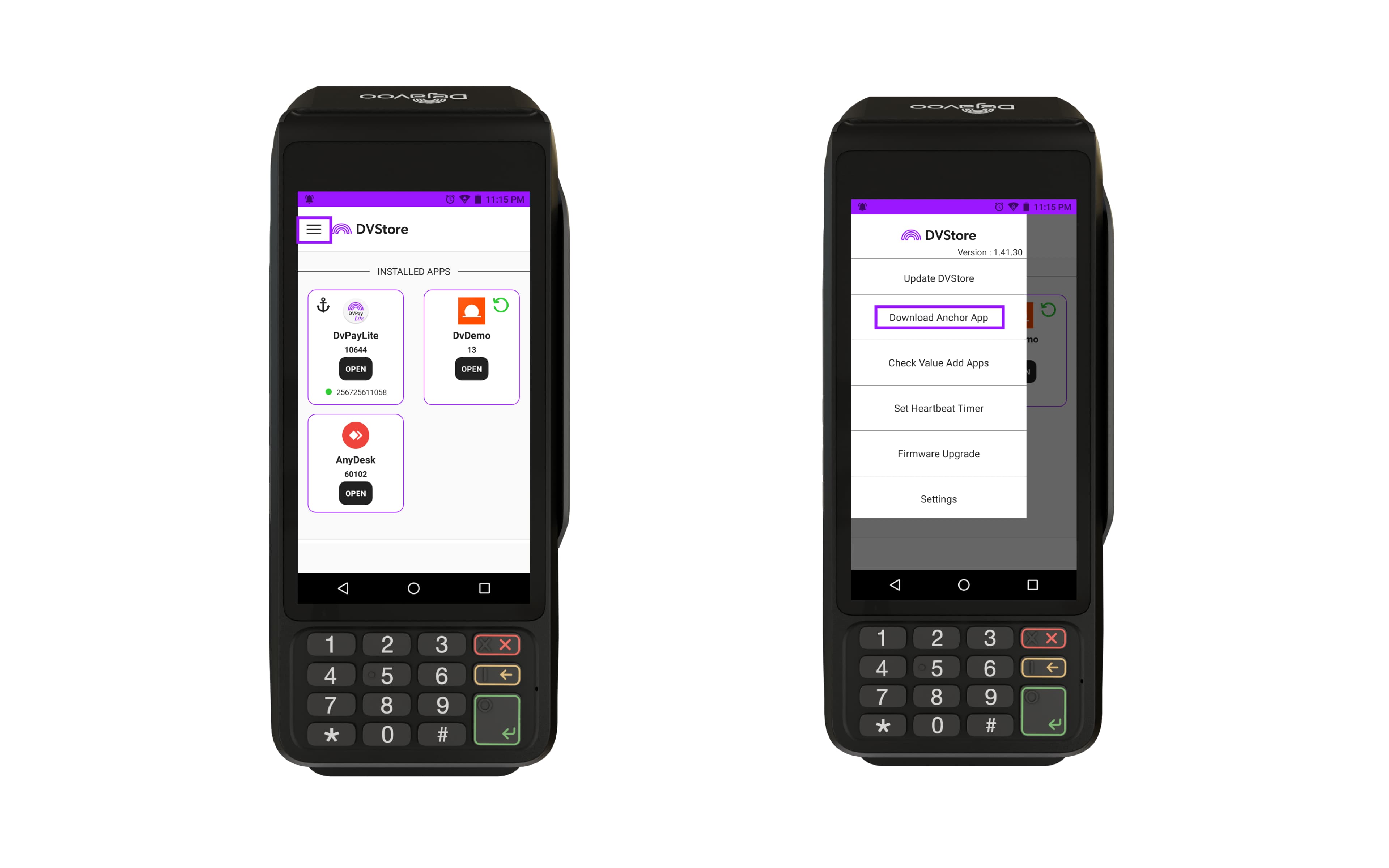 The Anchor App is the primary payment application installed on a merchant’s terminal (TPN), such as DvPay, DvPayLite, or DPP. It serves as the main interface for processing transactions.