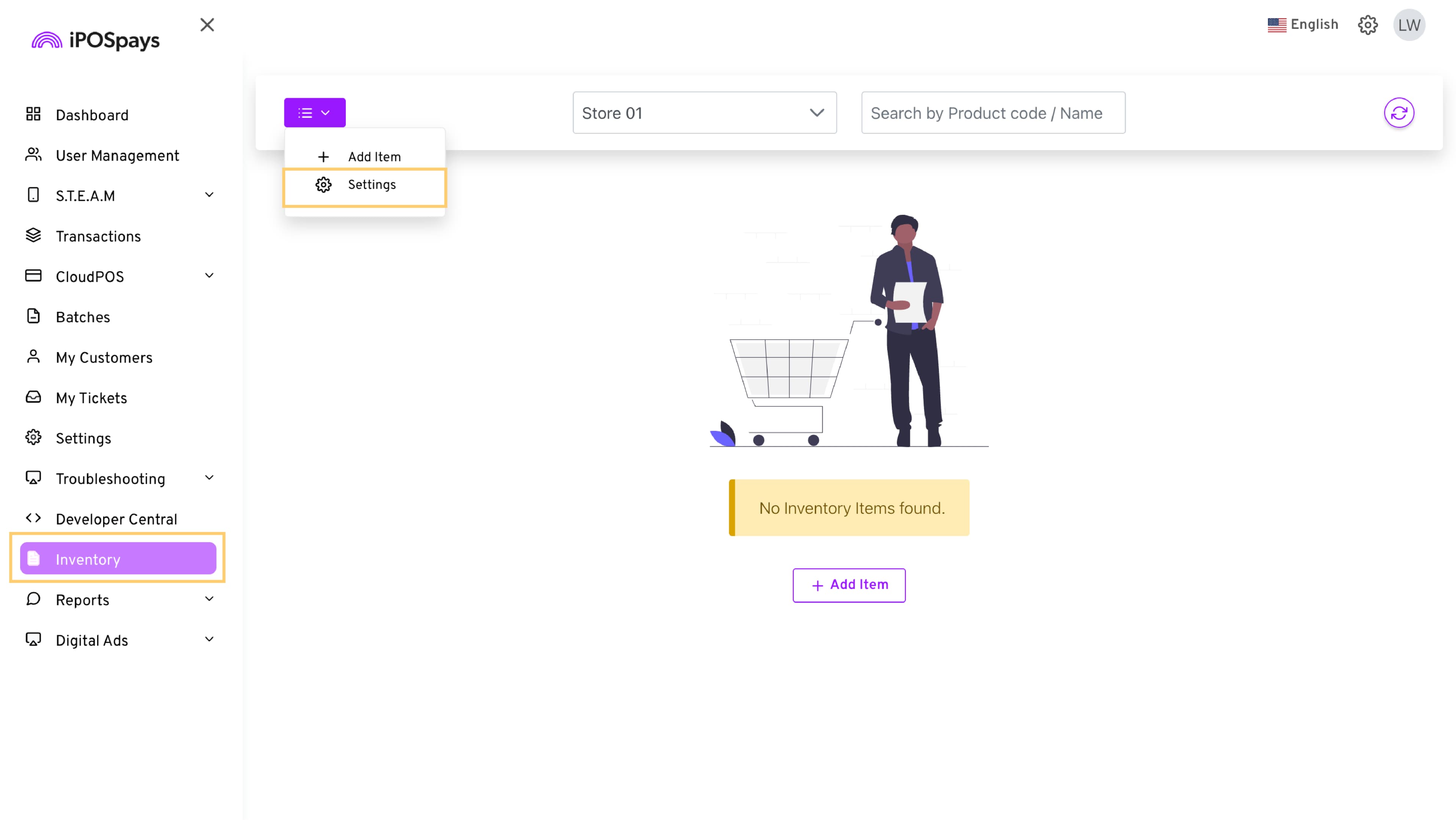 - Click Configure Inventory or go to Menu → Settings
