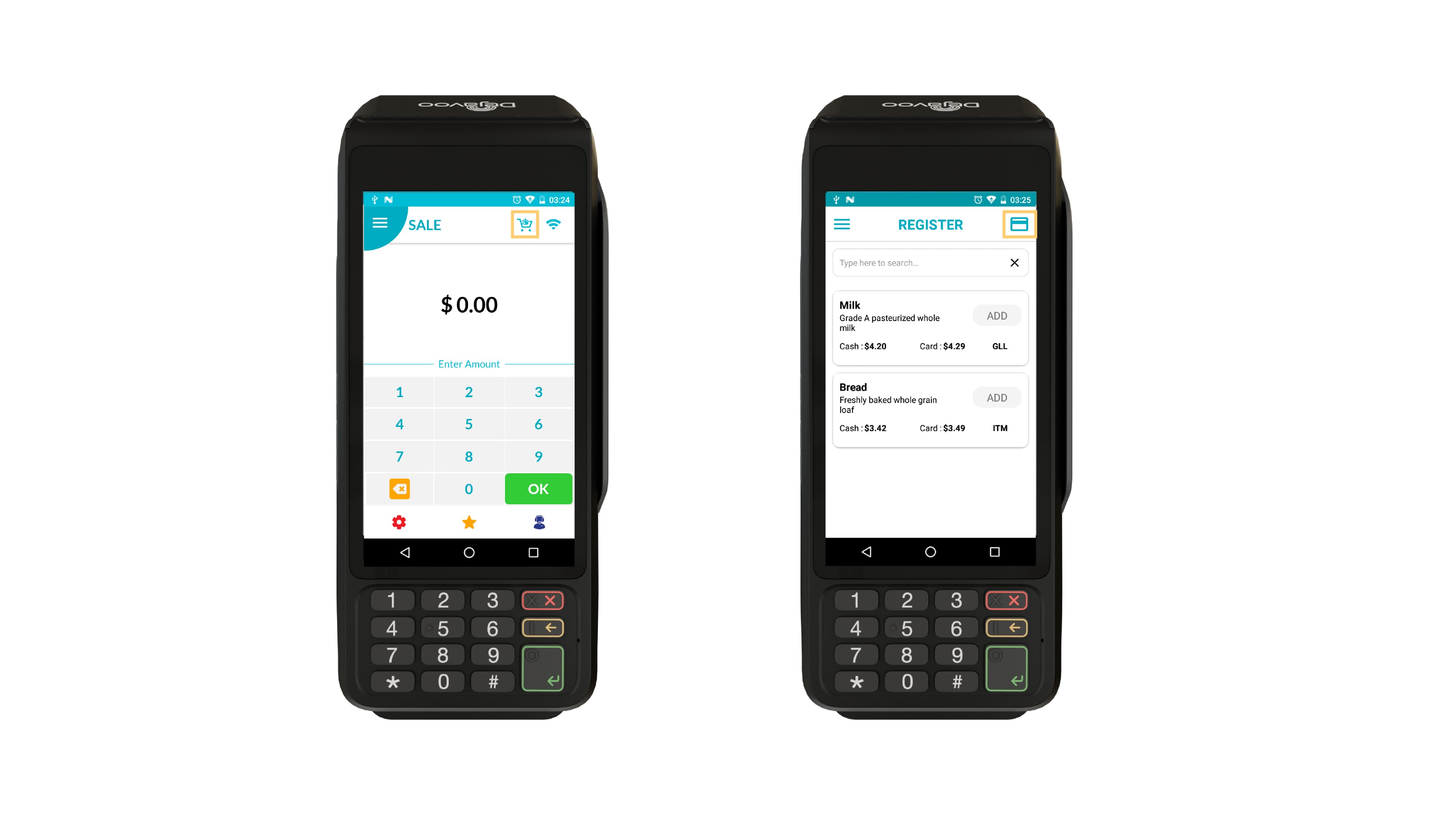 Register Lite is a simplified, built-in cash register experience available on all Dejavoo Gateway-powered payment terminals and iPOSgo!(iOS). It enables merchants to efficiently manage inventory, apply pricing rules, and process itemized transactions—all from the payment terminal itself.