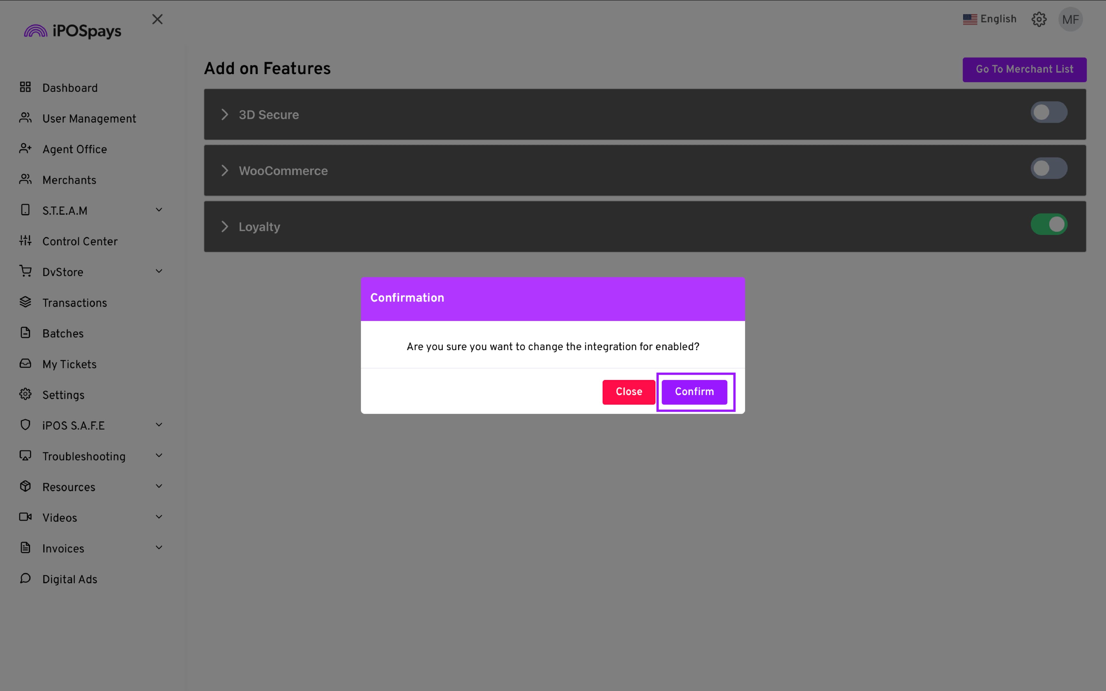 Navigate to the Add-On Features section in the iPOSpays portal.
