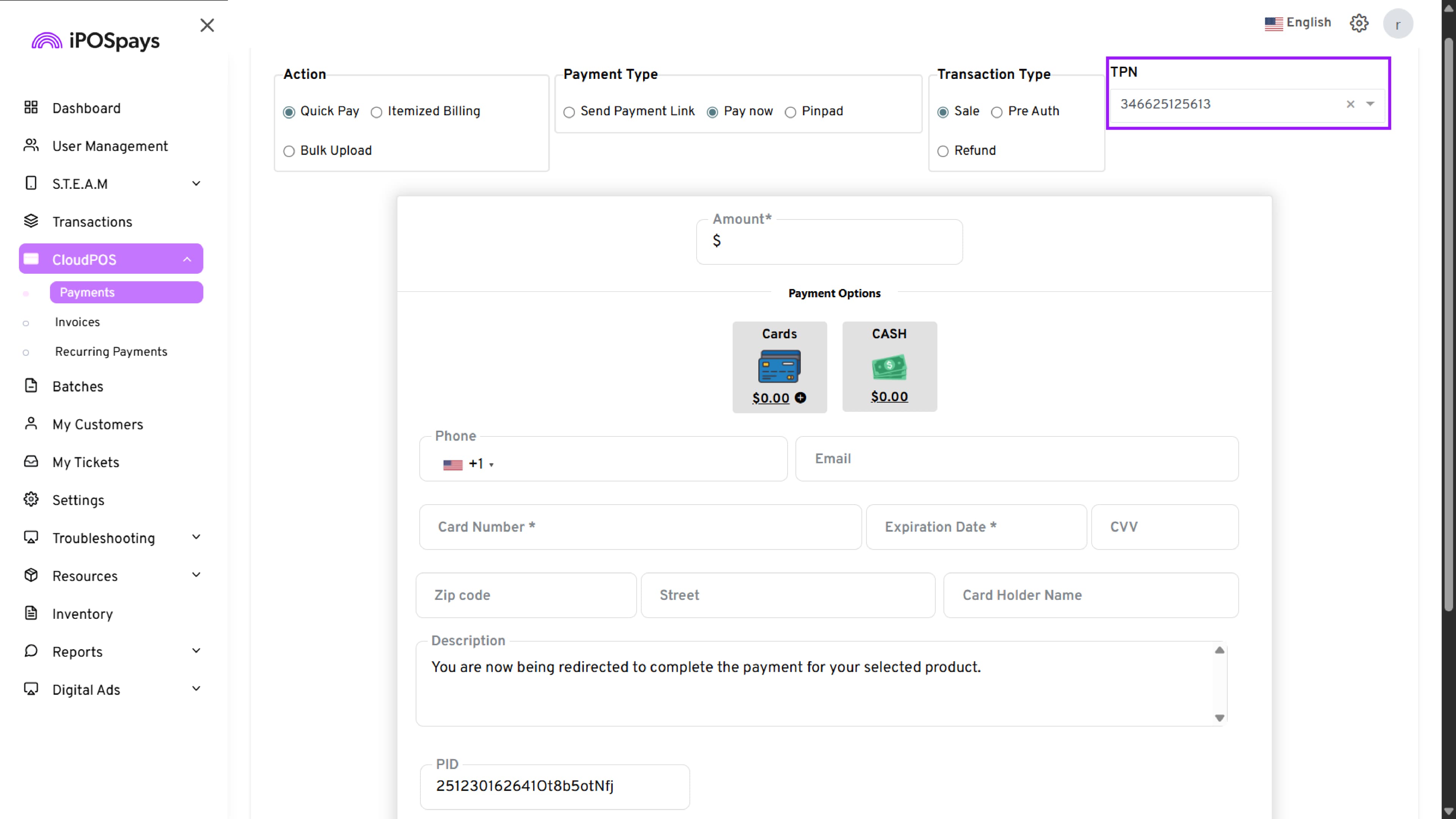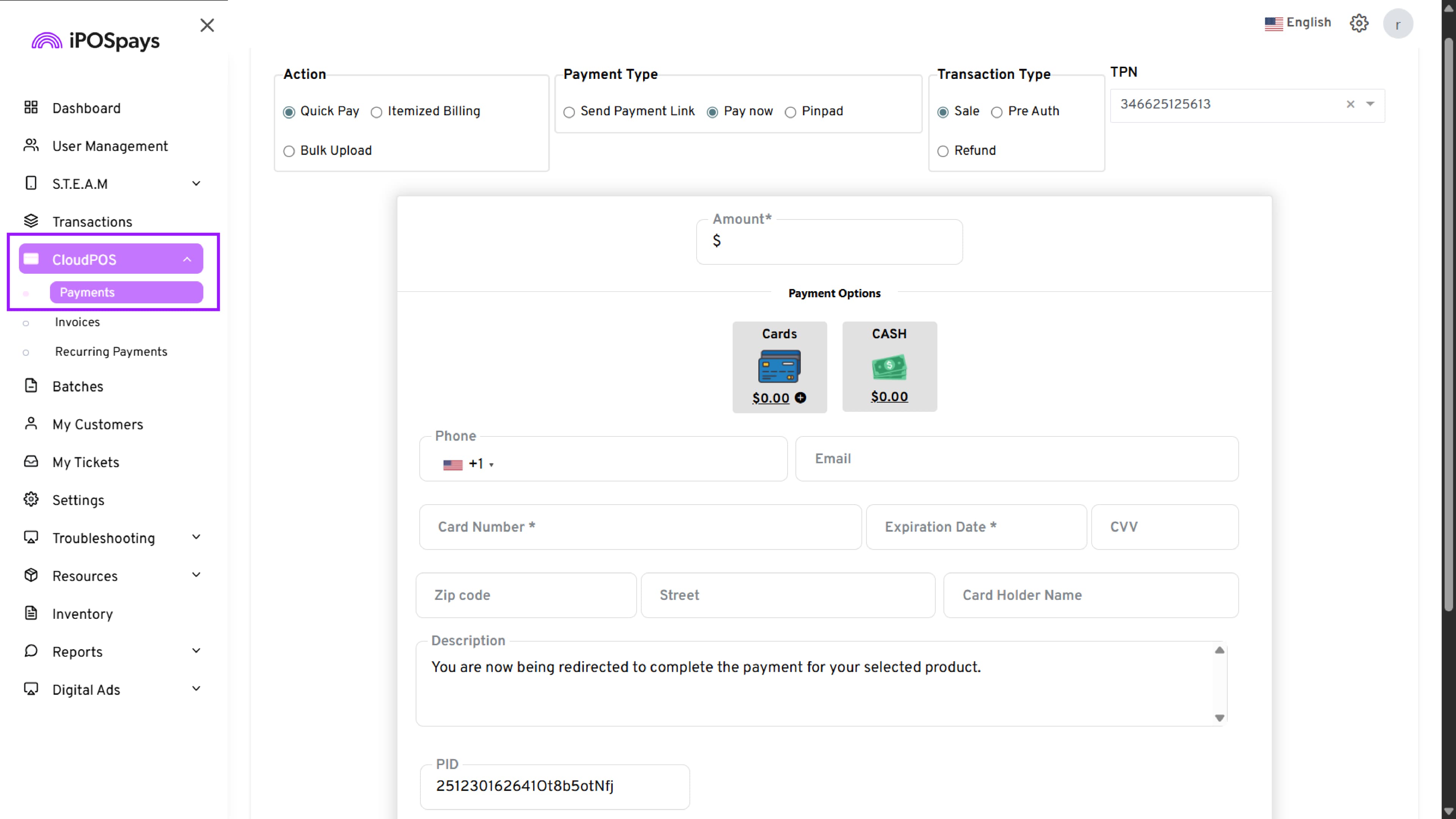 Supported Platforms: iPOSpays Portal (Merchant Account)